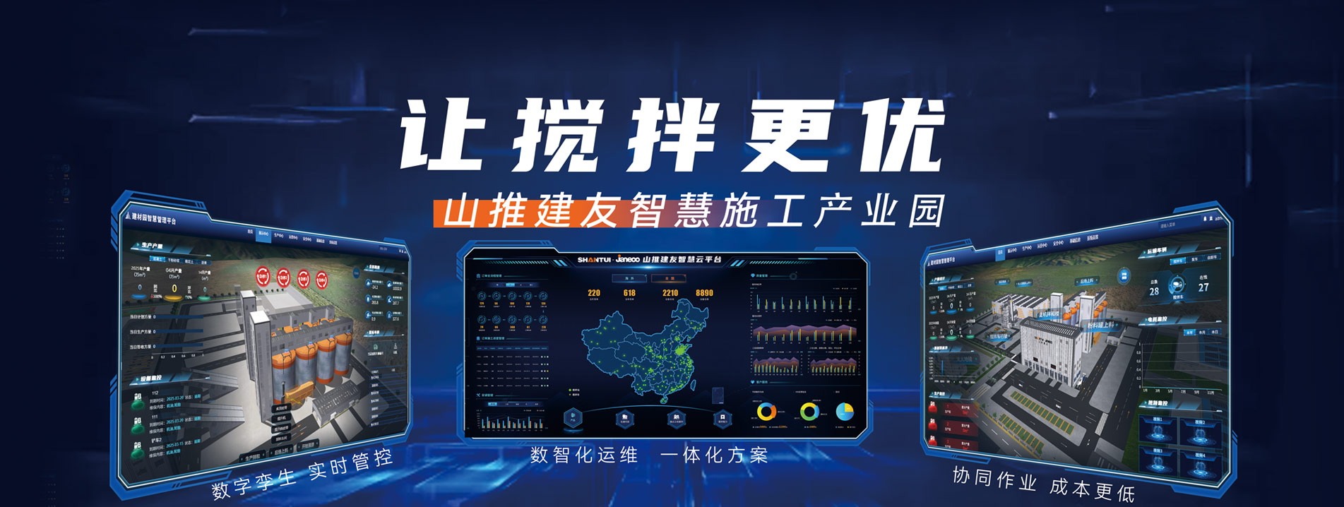 山推建友機(jī)械股份有限公司主營混凝土攪拌站、瀝青攪拌站、穩(wěn)定土拌合站、干混砂漿站、制砂站、破碎線、混凝土攪拌運(yùn)輸車、圾處理設(shè)備及拖泵、砂石分離機(jī)等各類攪拌機(jī)械。